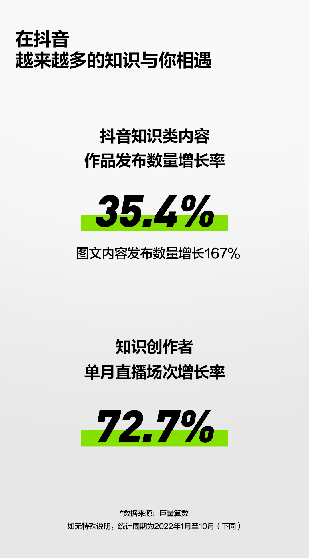 12月28日,抖音聯(lián)合巨量算數(shù)發(fā)布了《2022抖音知識(shí)數(shù)據(jù)報(bào)告》(簡(jiǎn)稱報(bào)告)。報(bào)告顯示,抖音知識(shí)類作品發(fā)布數(shù)量增長(zhǎng)35 4%、高校直播場(chǎng)次增長(zhǎng)46% ...