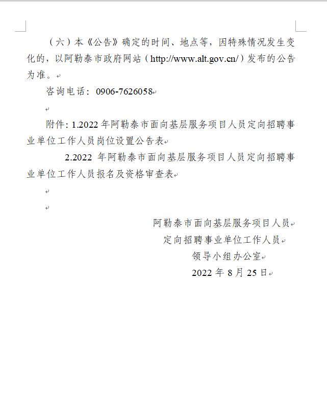 2022年阿勒泰地區(qū)阿勒泰市面向基層服務(wù)項(xiàng)目人員定向招聘事業(yè)單位工作人員公告