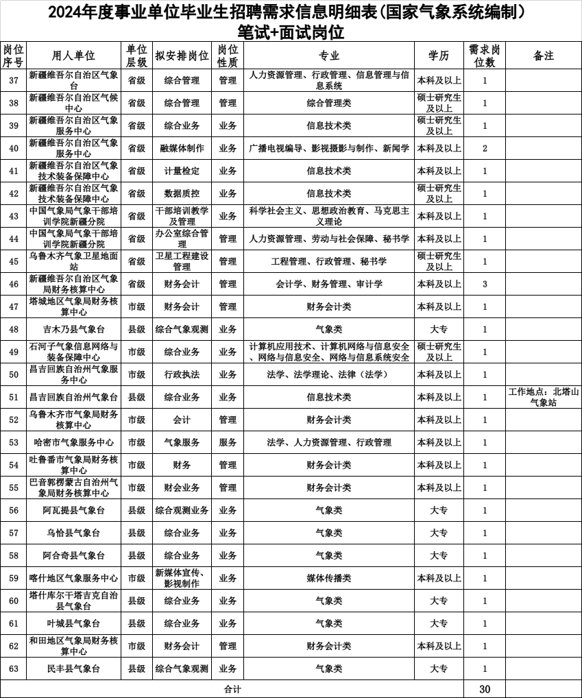 2024-03-12 17:09:00閱讀()新疆維吾爾自治區(qū)氣象局根據《氣象部門事業(yè)單位公開招聘人員管理辦法》,為加強新疆氣象人才隊伍建設,滿足新疆氣象事業(yè)發(fā)展需要,現面向各高等院校、科研院所應屆畢業(yè)生招聘事業(yè)編制工作人員,有關事項公告如下: