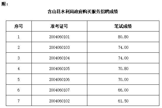2020年馬鞍山含山縣水利局招聘政府購買服務(wù)工作人員招聘成績公示