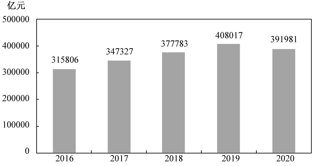 2020年我國(guó)社會(huì)消費(fèi)品零售總額391981億元。按經(jīng)營(yíng)地統(tǒng)計(jì),城鎮(zhèn)消費(fèi)品零售額339119億元,下降4.0%;鄉(xiāng)村消費(fèi)品零售額52862億元,下降3.2%。按消費(fèi)類型統(tǒng)計(jì),商品零售額352453億元,下降2.3%;餐飲收入額39527億元,下降16.6%。