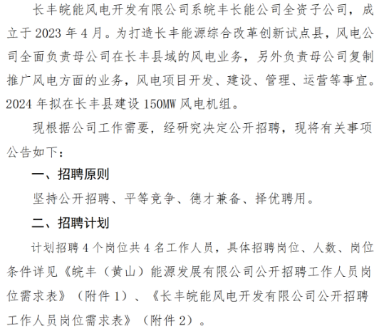 2024年安徽皖豐長能投資有限責(zé)任公司所屬子公司開展第一批公開招聘公告