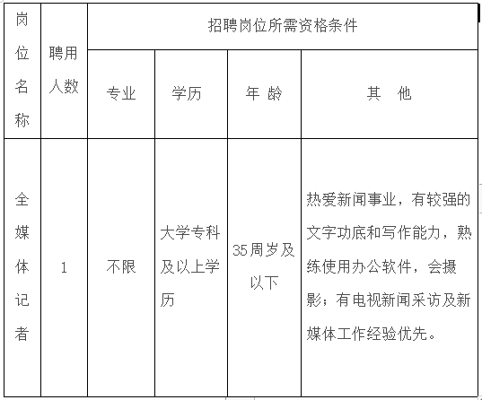 通過第三方勞務(wù)派遣方式招聘全媒體記者1名。