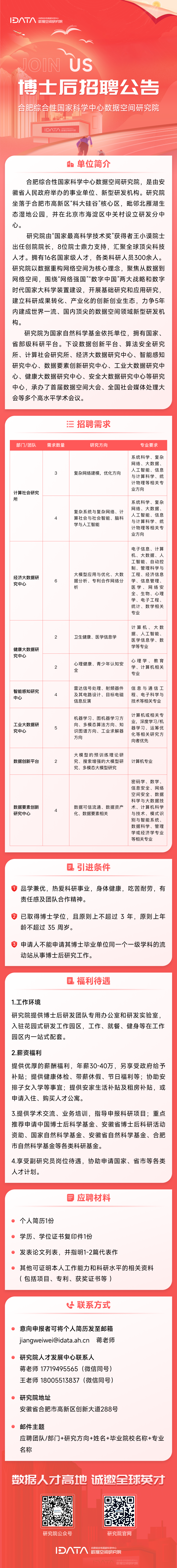 2024年合肥綜合性國家科學中心數(shù)據(jù)空間研究院博士后招聘公告