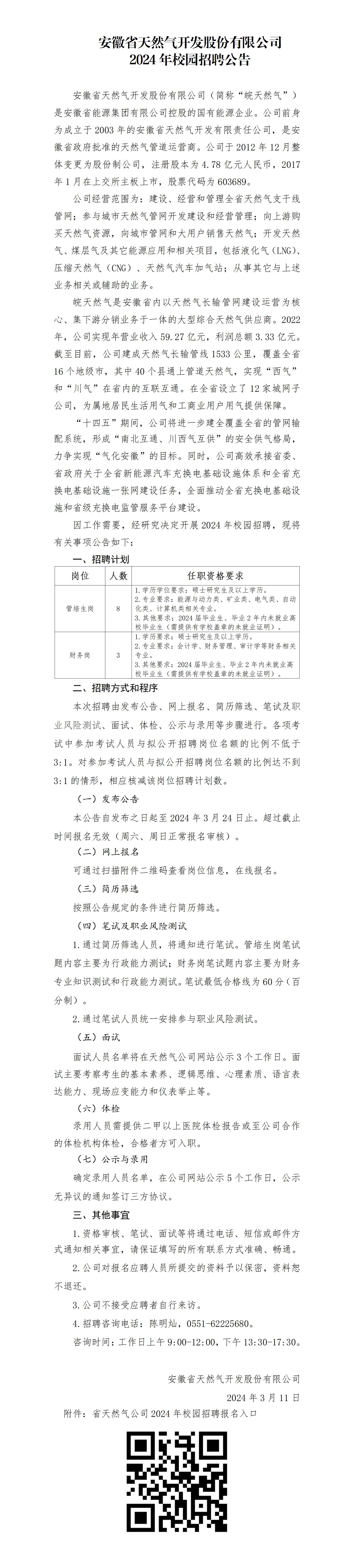 2024年安徽省天然氣開發(fā)股份有限公司校園招聘公告