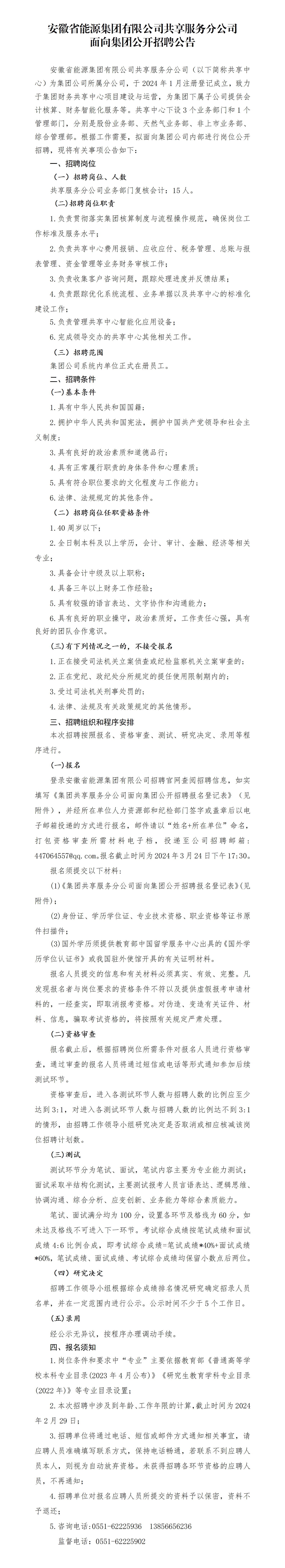 2024年安徽省能源集團(tuán)有限公司共享服務(wù)分公司面向集團(tuán)公開招聘公告