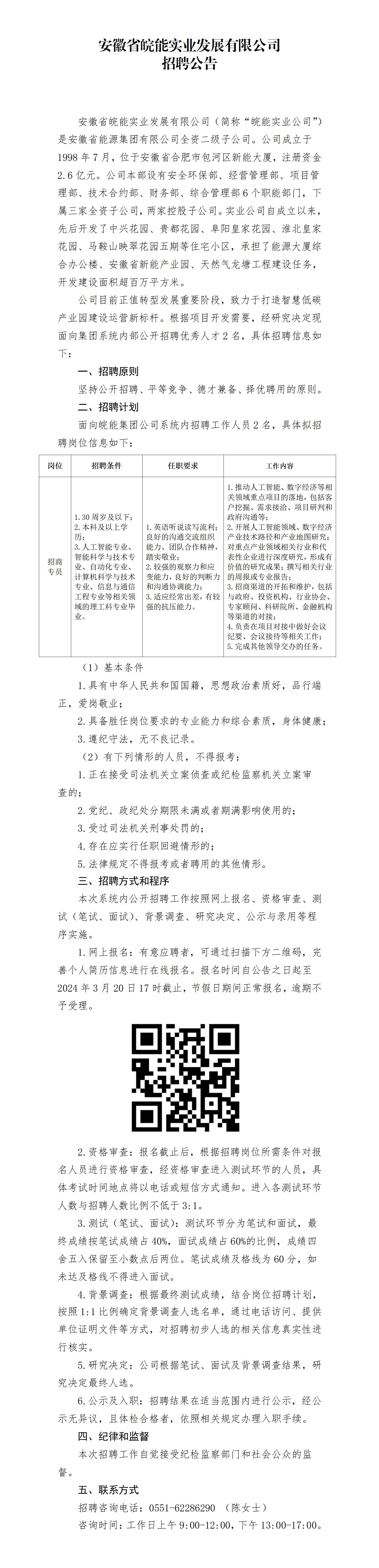2024年安徽省皖能實(shí)業(yè)發(fā)展有限公司招聘公告