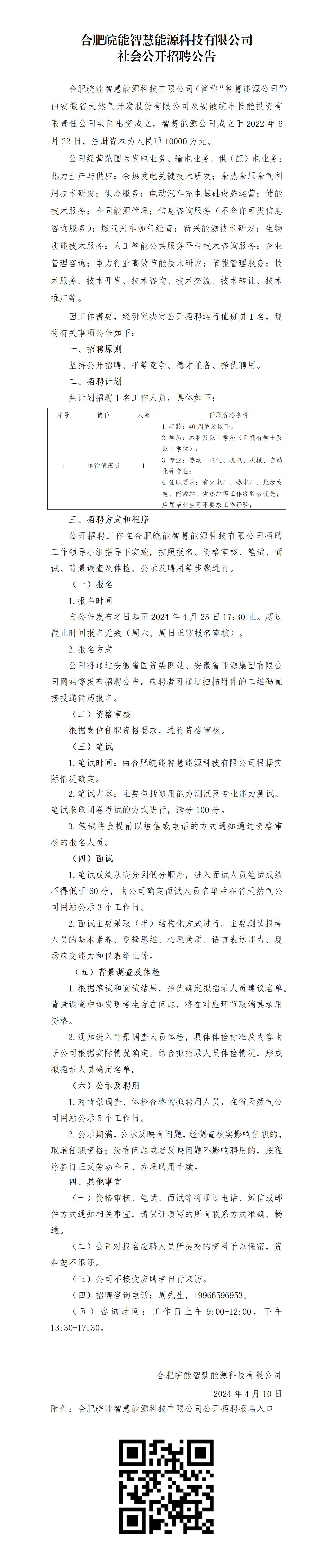 2024年合肥皖能智慧能源科技有限公司社會(huì)公開(kāi)招聘公告