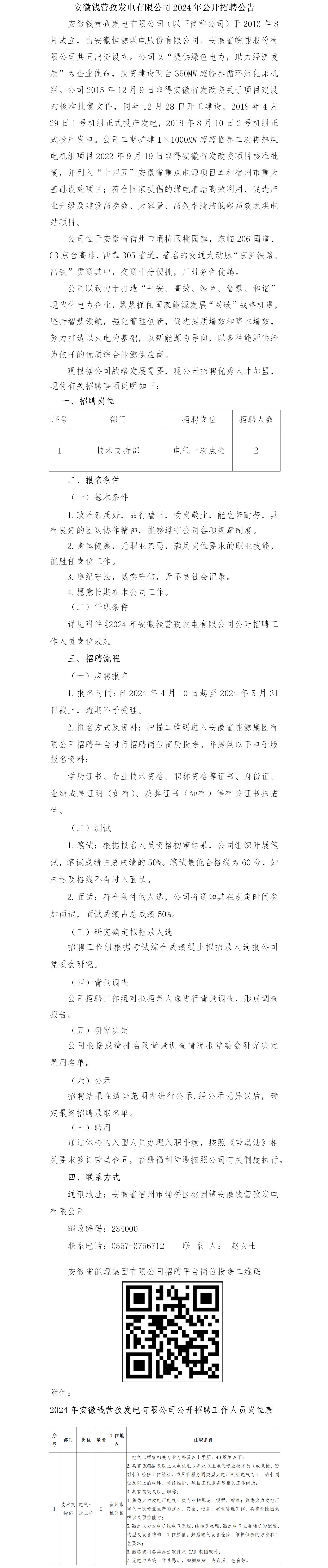 2024年宿州安徽錢營(yíng)孜發(fā)電有限公司公開招聘公告