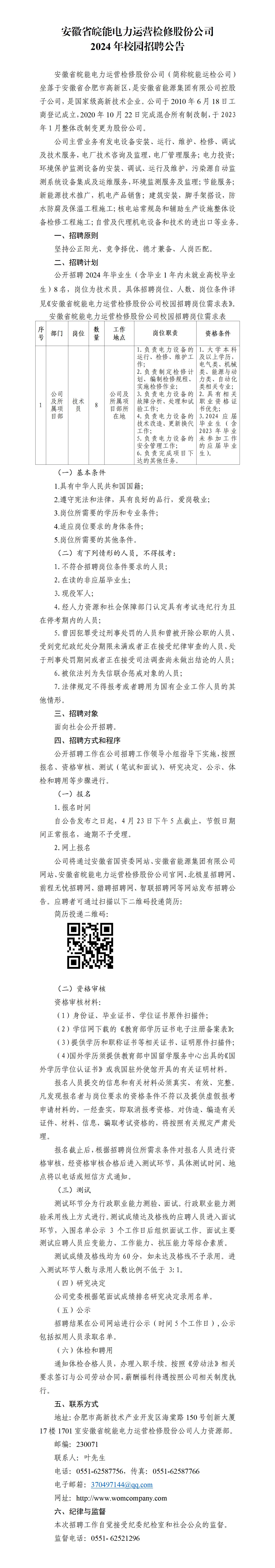 2024年安徽省皖能電力運(yùn)營檢修股份公司校園招聘公告