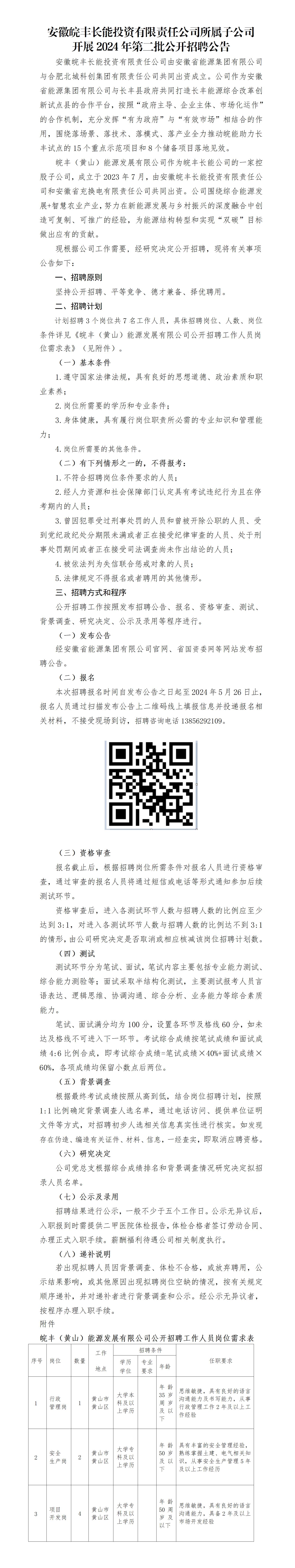 2024年安徽皖豐長(zhǎng)能投資有限責(zé)任公司所屬子公司開(kāi)展第二批公開(kāi)招聘公告