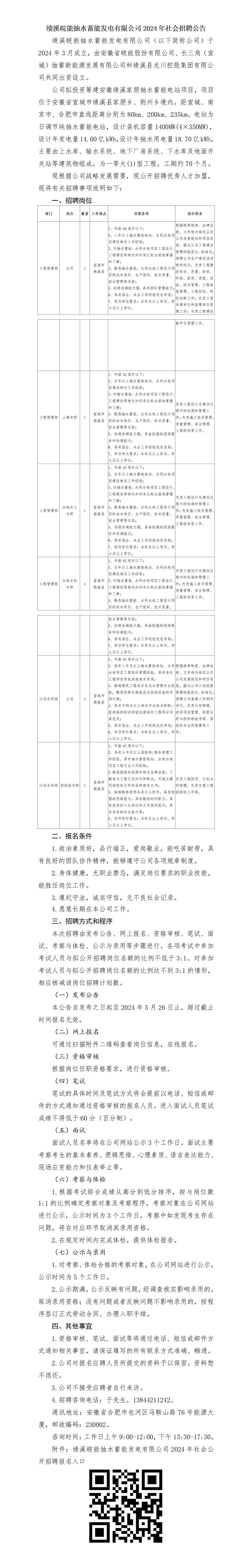 2024年宣城績(jī)溪皖能抽水蓄能發(fā)電有限公司社會(huì)招聘公告