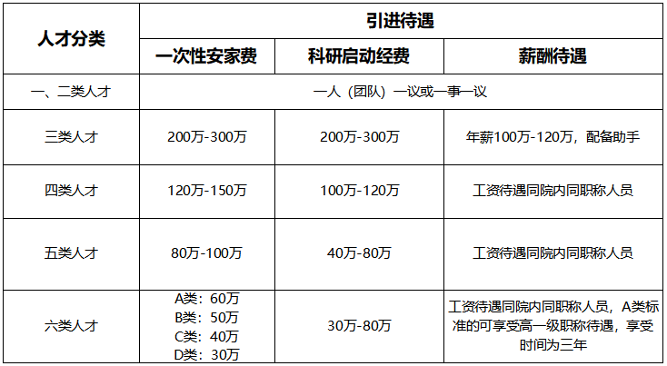 積極鼓勵(lì)引進(jìn)人才團(tuán)隊(duì),實(shí)行“一事一策”,團(tuán)隊(duì)成員按同層次人才上浮 10% 享受待遇;團(tuán)隊(duì)科研啟動經(jīng)費(fèi)300-600 萬元?;虬凑請F(tuán)隊(duì)人才類型對應(yīng)的科研啟動經(jīng)費(fèi)累計(jì)計(jì)發(fā)。