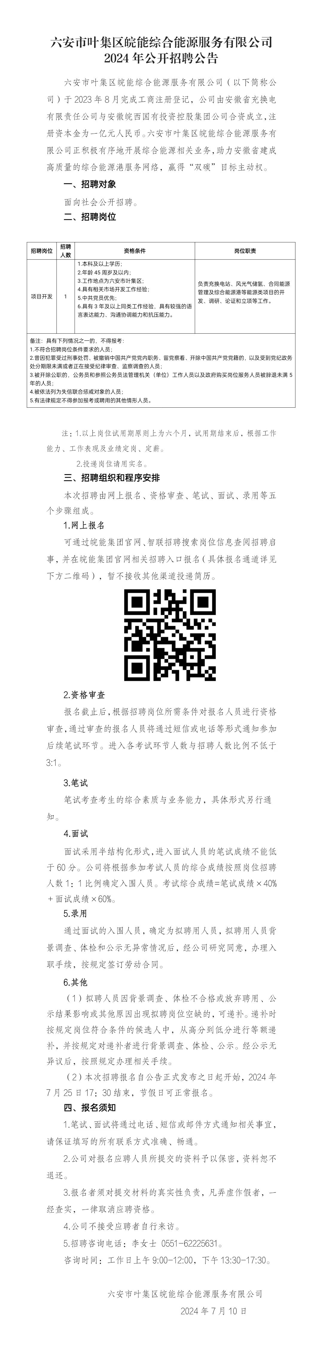 2024年六安市葉集區(qū)皖能綜合能源服務(wù)有限公司公開招聘公告