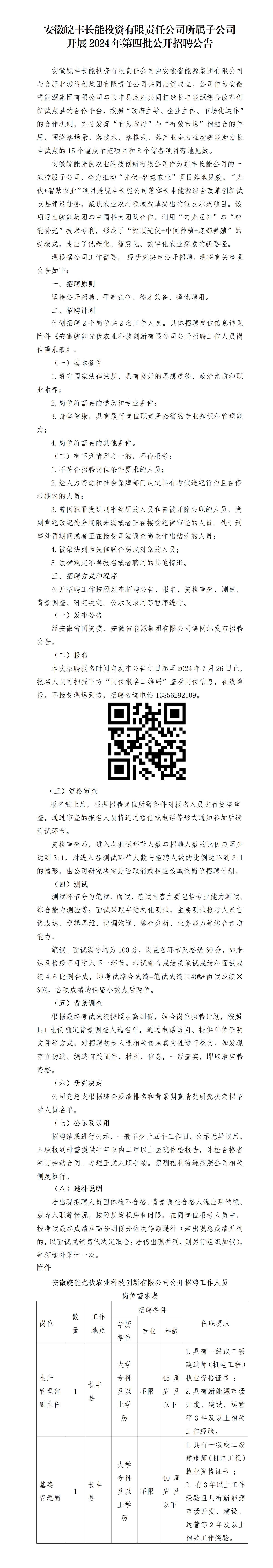 2024年安徽皖豐長(zhǎng)能投資有限責(zé)任公司所屬子公司開展第四批公開招聘公告