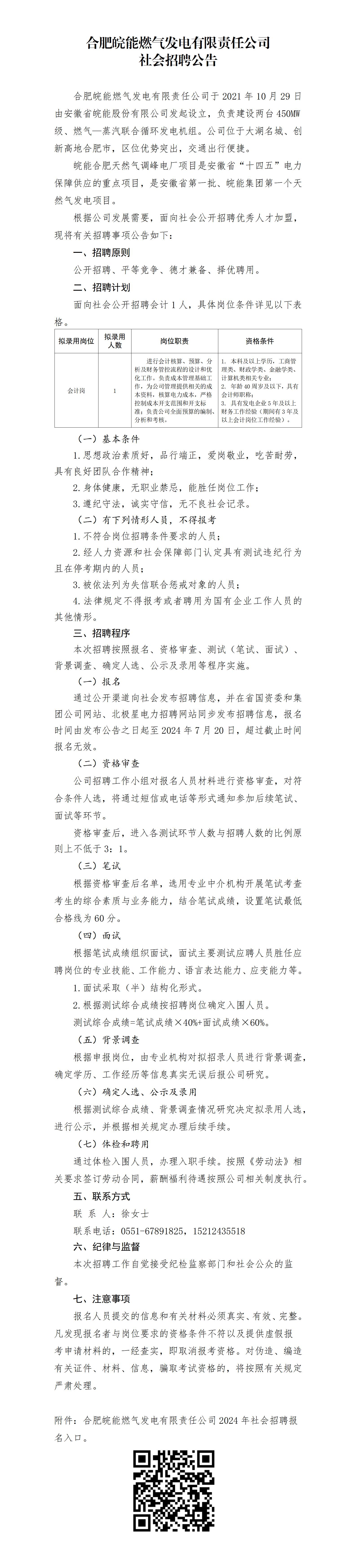 2024年合肥皖能燃氣發(fā)電有限責任公司社會招聘公告