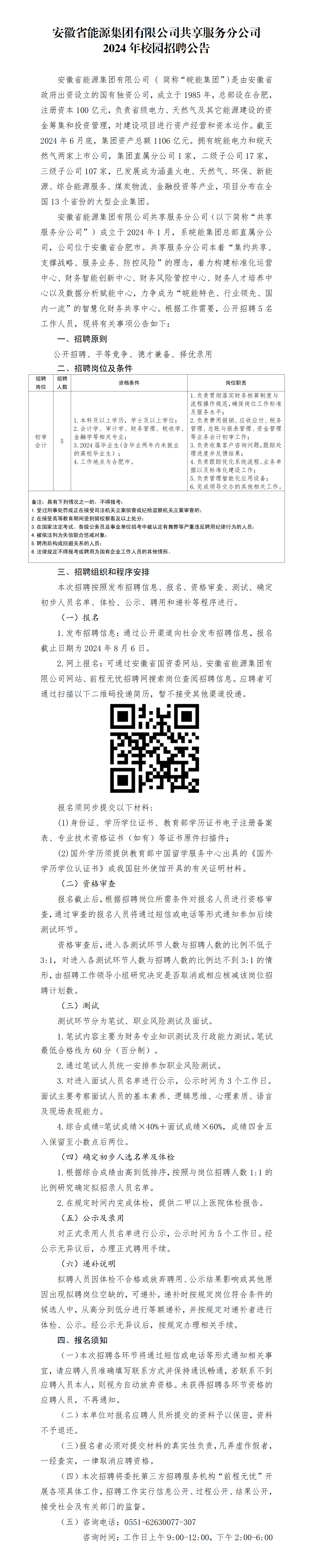 2024年安徽省能源集團有限公司共享服務分公司校園招聘公告