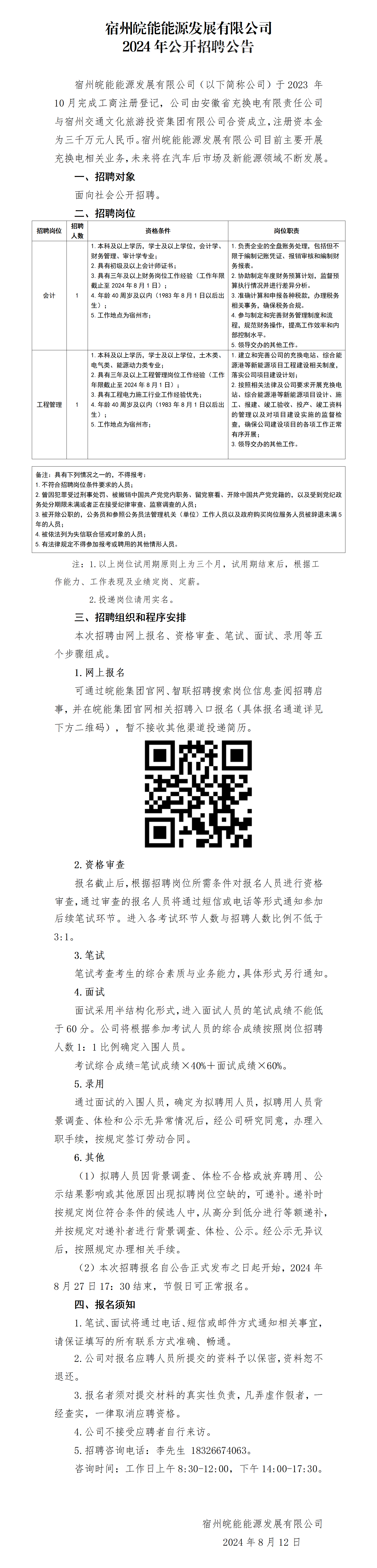 2024年宿州皖能能源發(fā)展有限公司公開(kāi)招聘公告
