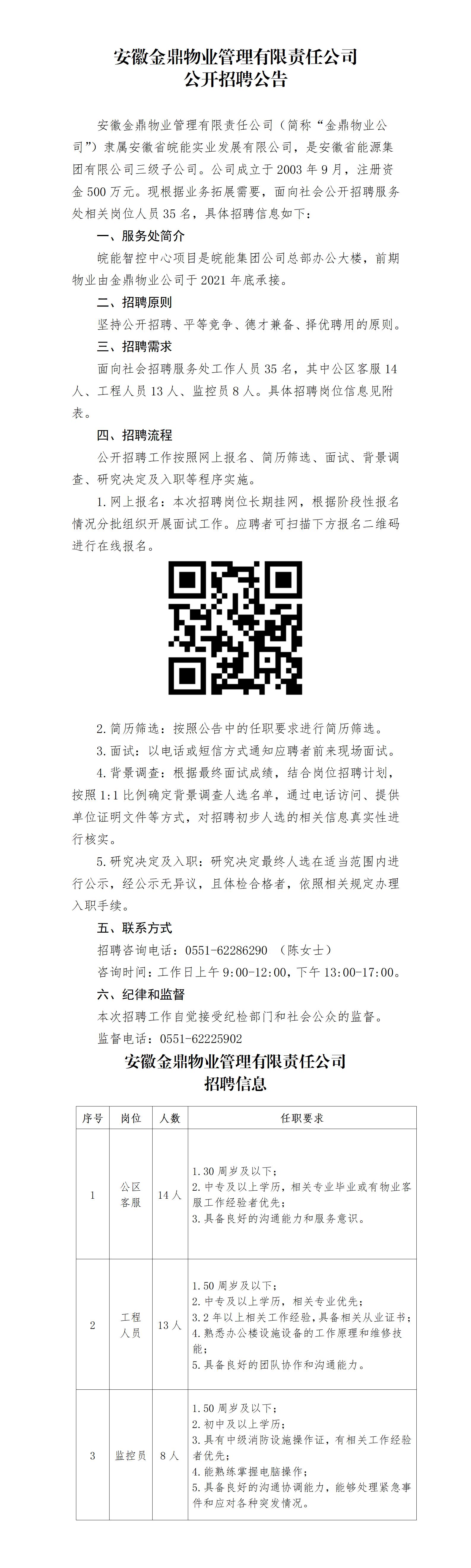 2024年安徽金鼎物業(yè)管理有限責(zé)任公司公開招聘公告