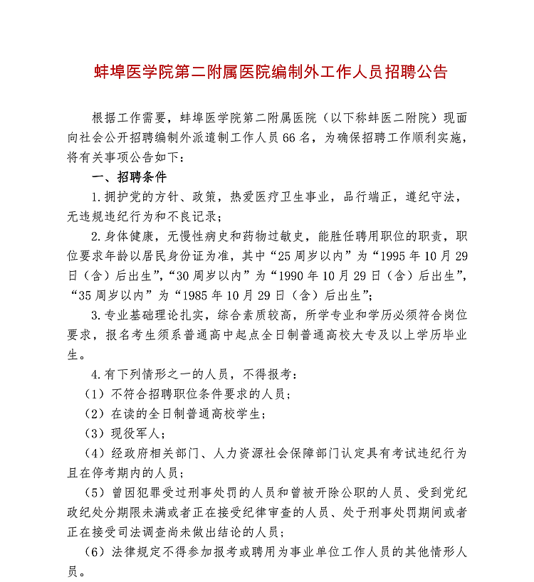 2020年蚌埠醫(yī)學(xué)院第二附屬醫(yī)院編制外工作人員招聘公告