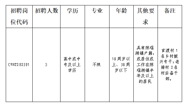 2025年銅陵市郊區(qū)陳瑤湖鎮(zhèn)公開招聘鄉(xiāng)村振興專干和村級 后備干部公告