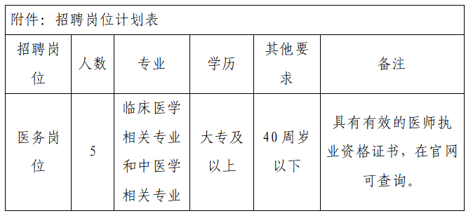 招聘醫(yī)院醫(yī)師5人,具體要求詳見附件。