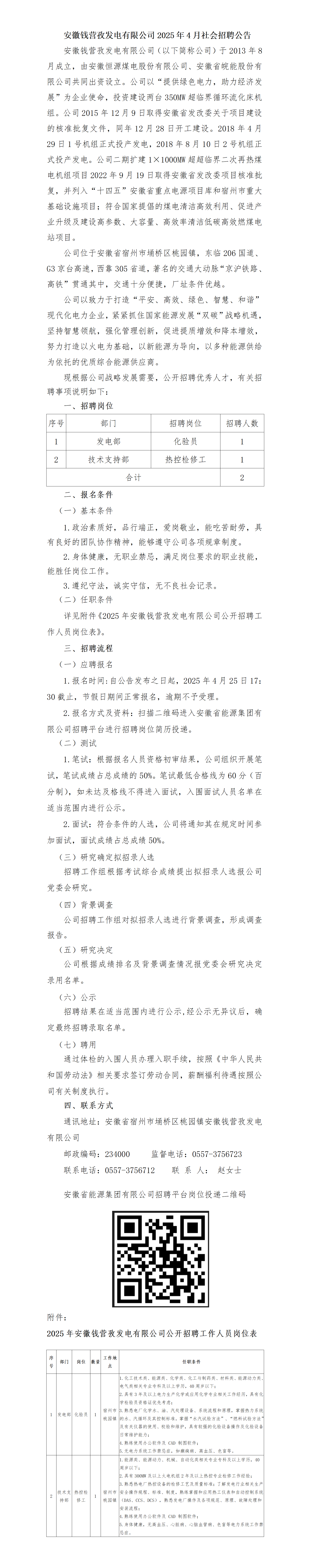2025年安徽錢營孜有限公司社會招聘公告