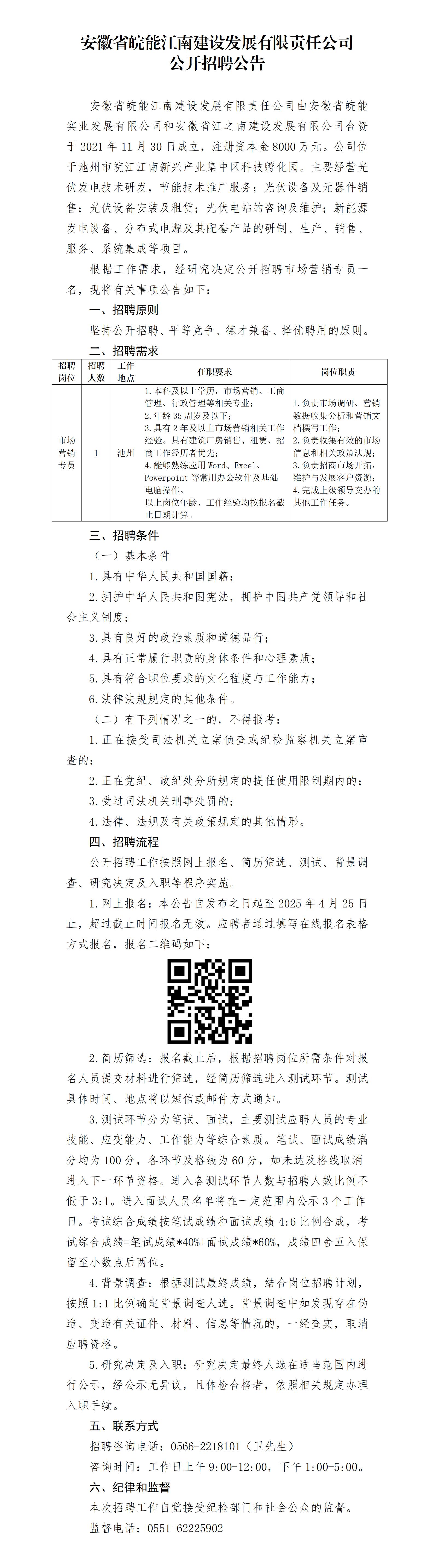 2025年池州安徽省皖能江南建設(shè)發(fā)展有限責(zé)任公司公開招聘公告