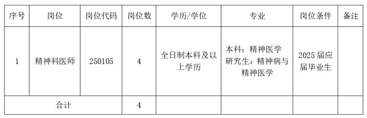 2025年度校園招聘衛(wèi)生專業(yè)技術(shù)人員4名,具體崗位信息詳見下表: