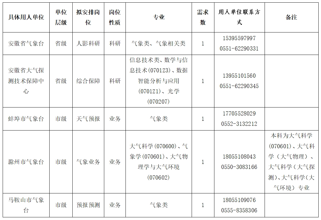 此批次安徽省氣象部門事業(yè)單位招聘工作面向博士崗位。