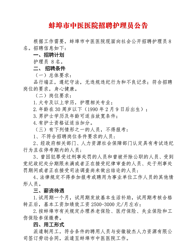 2020年蚌埠市中醫(yī)醫(yī)院招聘護(hù)理員公告