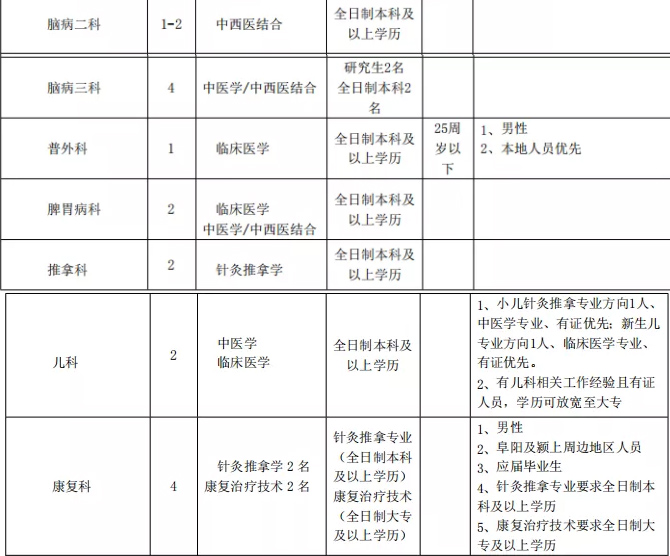 2021年潁上縣中醫(yī)院醫(yī)療衛(wèi)生專業(yè)技術(shù)人員招聘計(jì)劃表