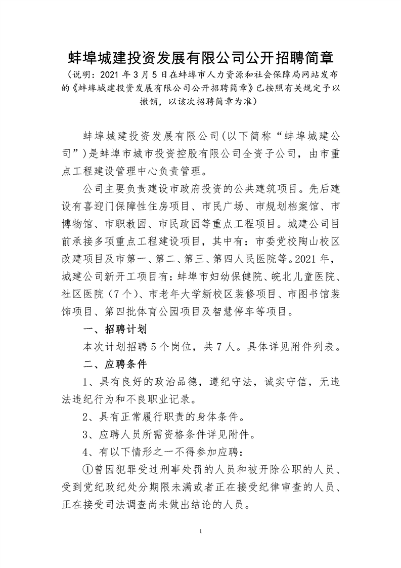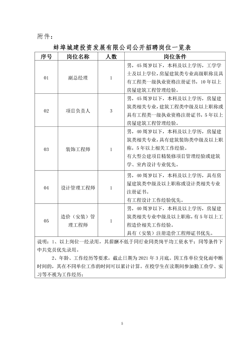 2021年蚌埠城建投資發(fā)展有限公司公開招聘簡章