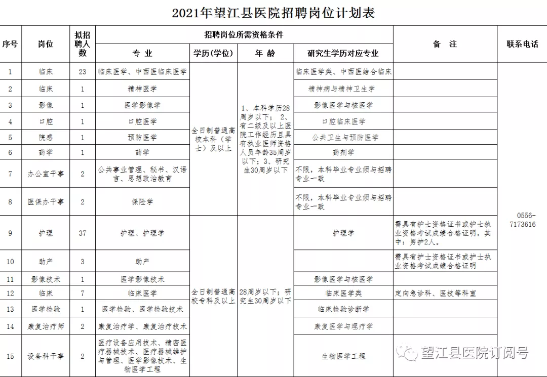 考試時(shí)間請(qǐng)關(guān)注望江縣人民醫(yī)院網(wǎng)站招聘公告通知,我們期待你的加入,共創(chuàng)望醫(yī)美好的明天!