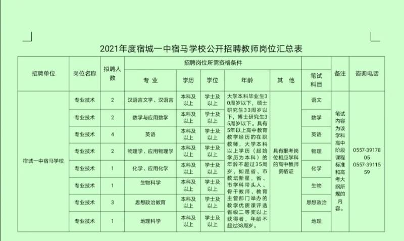招聘相關(guān)信息在宿州教育體育局網(wǎng)站、宿城一中網(wǎng)站上發(fā)布。