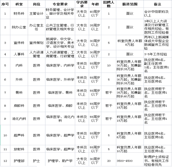 因醫(yī)院發(fā)展需要,現(xiàn)面向社會(huì)誠(chéng)聘工作人員若干,具體要求如下: