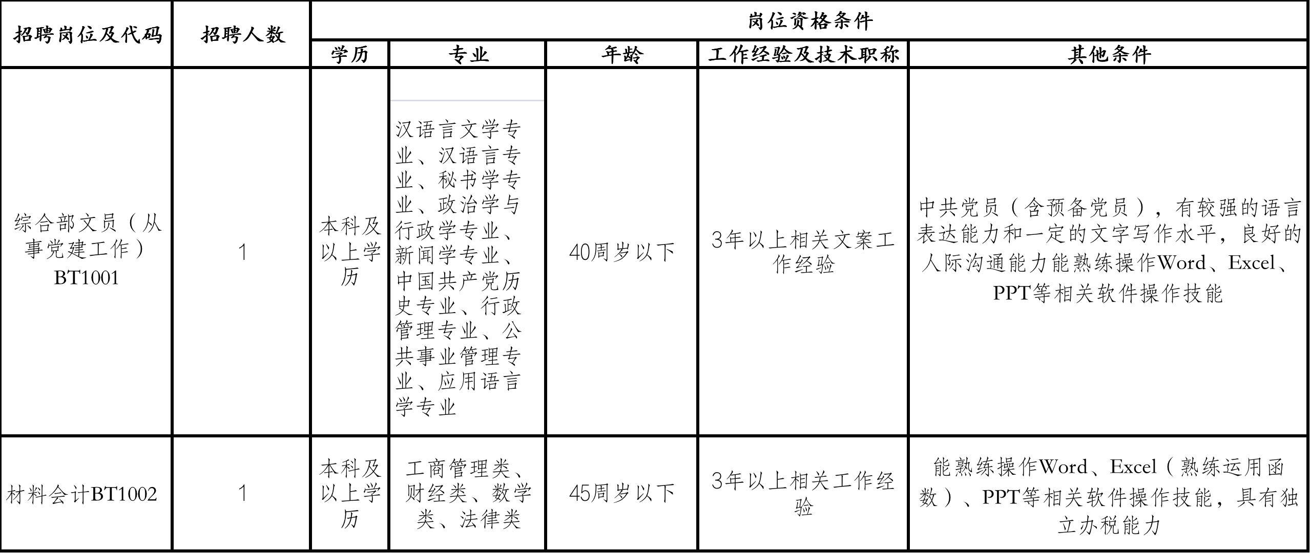 (一) 擁護中國共產(chǎn)黨的領(lǐng)導,具有較強事業(yè)心和責任感,遵紀守法、品行端正;具有一定的政策理論水平和專業(yè)知識;有一定的文字能力,熟悉計算機操作;具有適應(yīng)崗位要求的身體條件;愛崗敬業(yè)、廉潔奉公、有較強的工作執(zhí)行力、企業(yè)忠誠度和團隊合作精神,誠實可信;滿足崗位所需要的其他條件。