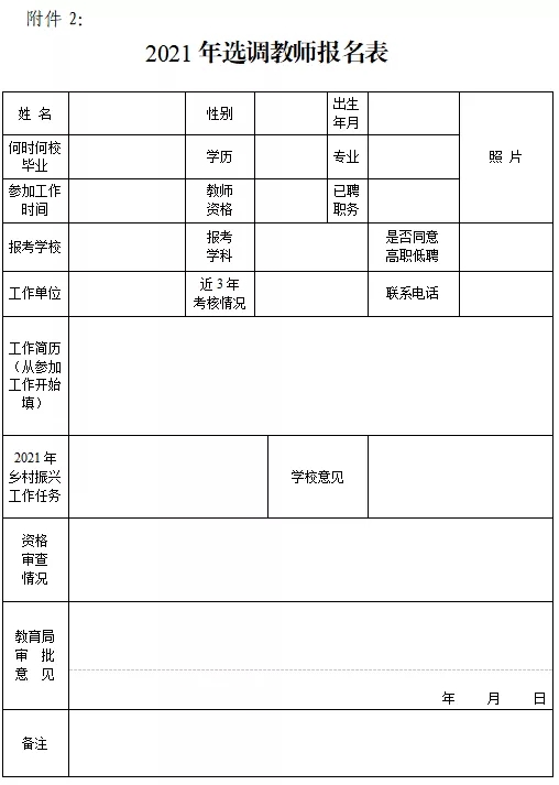 2、選調(diào)教師報名表