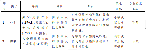 小學教師面向全縣農(nóng)村在編在崗滿3年(定崗招聘的教學點教師工作滿5年)的小學教師和2018年招聘且服務(wù)期滿留用的小學特崗教師選調(diào),初中教師面向全縣農(nóng)村在編在崗滿3年(定崗招聘的邊遠初中教師工作滿5年)的初中教師和2018年招聘且服務(wù)期滿留用的初中特崗教師選調(diào)。