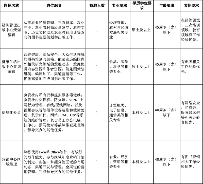 2021年中國農(nóng)業(yè)科學技術出版社有限公司編輯及營銷人員招聘公告