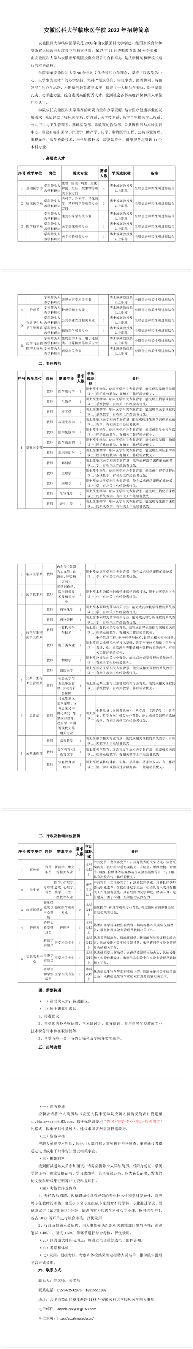 2022年安徽醫(yī)科大學臨床醫(yī)學院招聘簡章