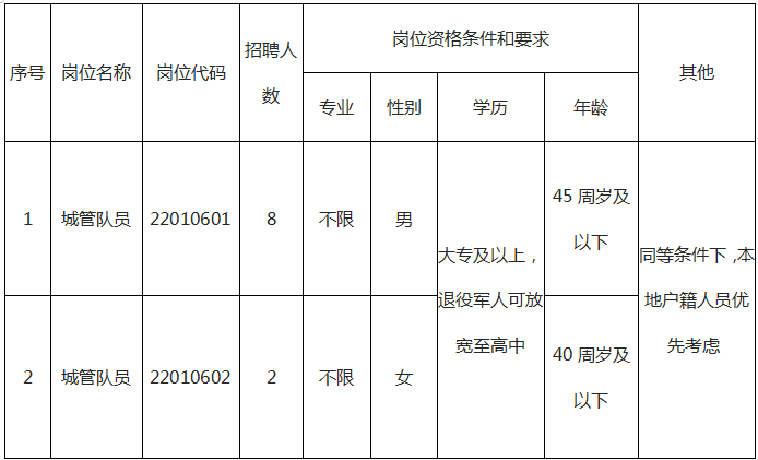 2021-12-29 22:42:09閱讀()為進(jìn)一步加強(qiáng)治安管理,提升治安管理水平和效率,現(xiàn)公開招聘長豐縣朱巷鎮(zhèn)城管隊(duì)員10名。現(xiàn)將有關(guān)事項(xiàng)公告如下: