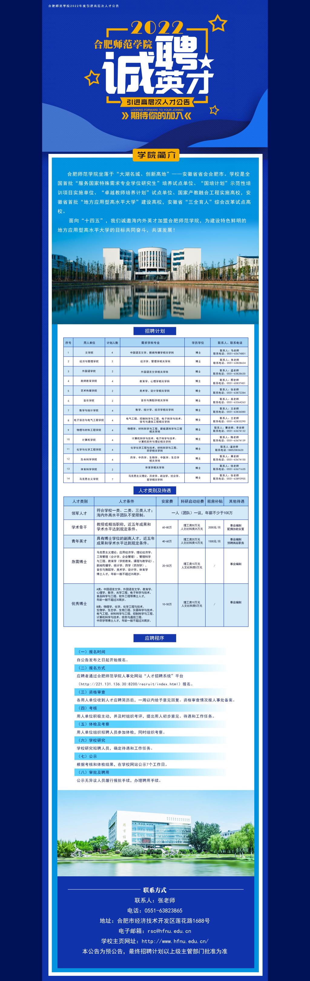 2022年合肥師范學院引進高層次人才公告