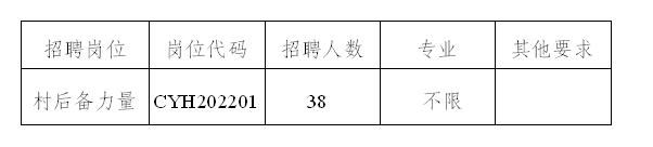 因工作需要,經研究,現(xiàn)面向社會公開招聘陳瑤湖鎮(zhèn)38名村級后備力量,現(xiàn)將有關事項公告如下: