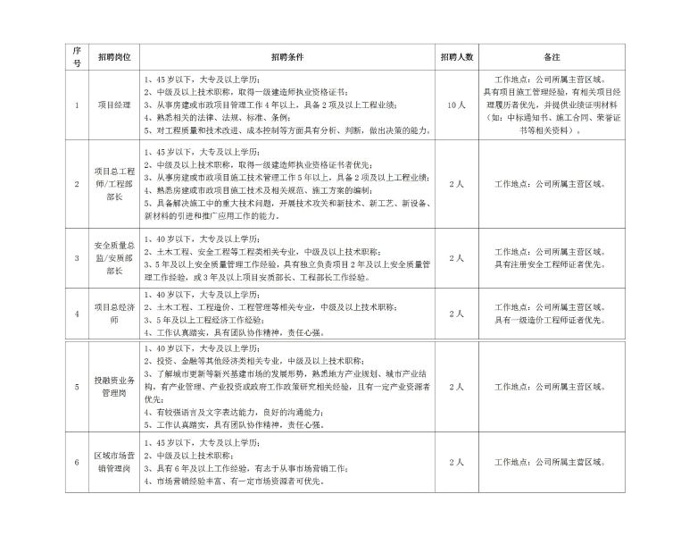 公司建立了以南京、蘇州、蚌埠等地為主的華東區(qū)域市場(chǎng),重慶、成都等地為主的西南區(qū)域市場(chǎng),西安、寶雞、漢中為主的陜西區(qū)域市場(chǎng),銀川、蘭州、白銀等地為主的西北區(qū)域市場(chǎng)。為滿足企業(yè)發(fā)展需要,強(qiáng)化區(qū)域市場(chǎng)經(jīng)營開發(fā)及施工生產(chǎn)管理,現(xiàn)已在廣州、鄭州、深圳等地設(shè)立了區(qū)域指揮部,實(shí)現(xiàn)人力資源對(duì)生產(chǎn)運(yùn)營的有效支撐,擬面向社會(huì)招聘具有一級(jí)建造師執(zhí)業(yè)資格及相關(guān)專業(yè)技術(shù)的管理人才。