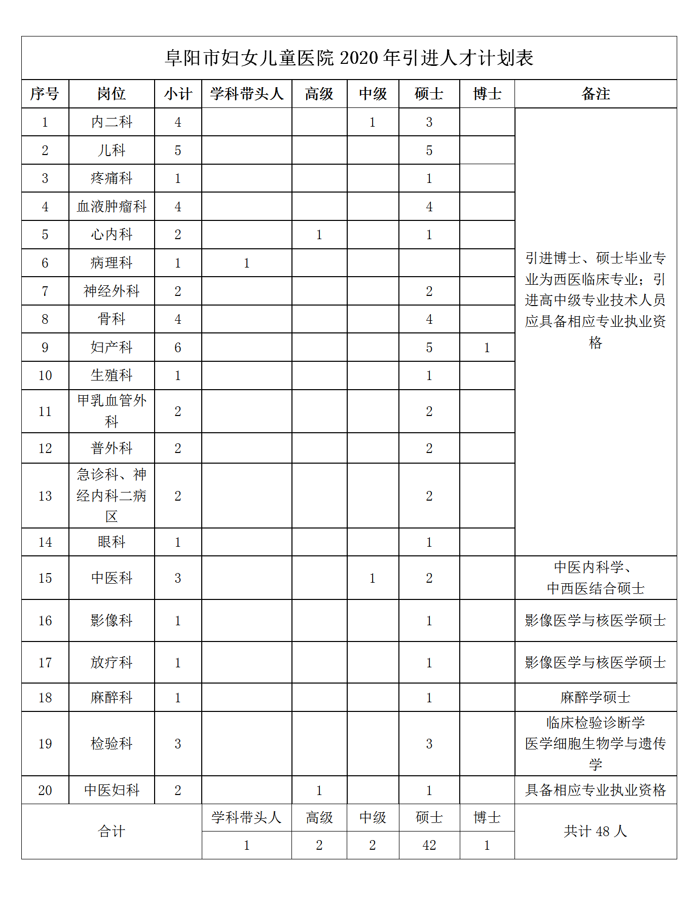 附件:阜陽(yáng)市婦女兒童醫(yī)院2020年引進(jìn)人才計(jì)劃表