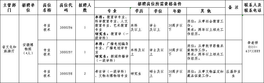 有關(guān)本次招聘崗位的具體問(wèn)題,請(qǐng)向安徽博物院直接咨詢。