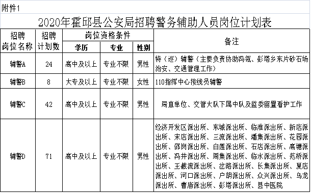 2020-06-30 23:07:25閱讀()霍邱縣人民政府根據(jù)全縣公安工作需要,經(jīng)霍邱縣人民政府批準(zhǔn),霍邱縣公安局面向社會(huì)公開(kāi)選聘警務(wù)輔助人員,現(xiàn)公告如下: