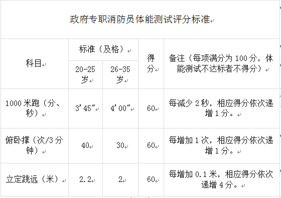 (3)測試項目:政府專職消防隊員1000米跑、俯臥撐、立定跳遠。