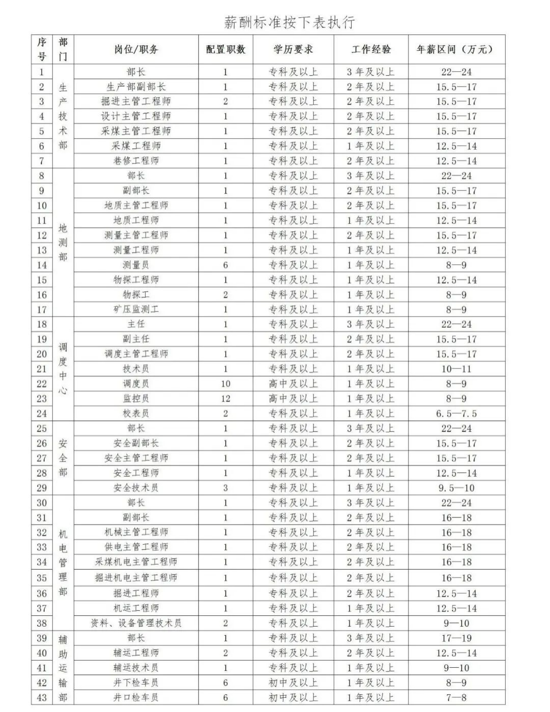 (2)區(qū)隊(duì)管理人員實(shí)行年薪制、產(chǎn)業(yè)技術(shù)工人實(shí)行效益工資制,具體標(biāo)準(zhǔn)參照下表: